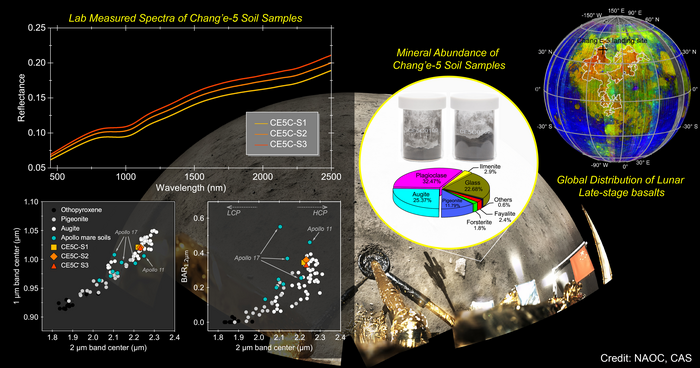 A team of researchers led by Prof. LI Chunlai from the National Astronomical Observatories of the Chinese Academy of Sciences (NAOC) published their findings on Oct. 10 in Nature Communications. The study employed both spectroscopic and x-ray diffraction (XRD) analysis techniques to infer the mineral composition of lunar soil samples brought back by CE-5.