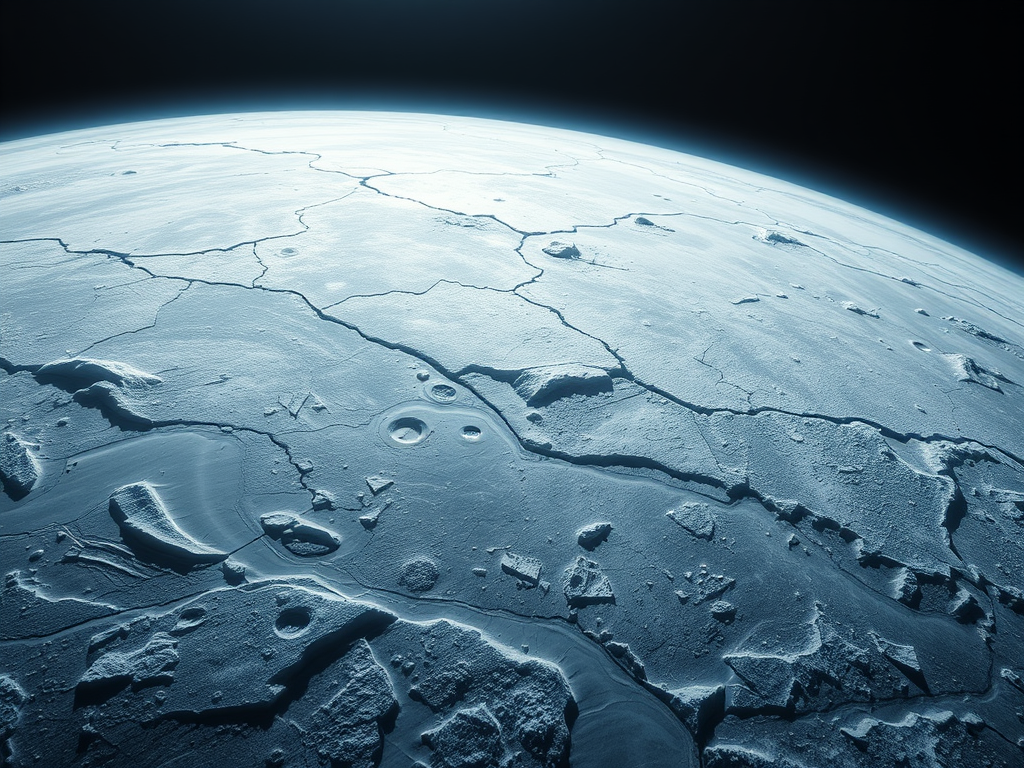 The ice shell on Europa is thought to be 15 to 25 km thick, and the ocean covers the entire moon to a depth of up to 100 km. Even though Europa is slightly smaller than our own Moon, it likely holds much more water than Earth.